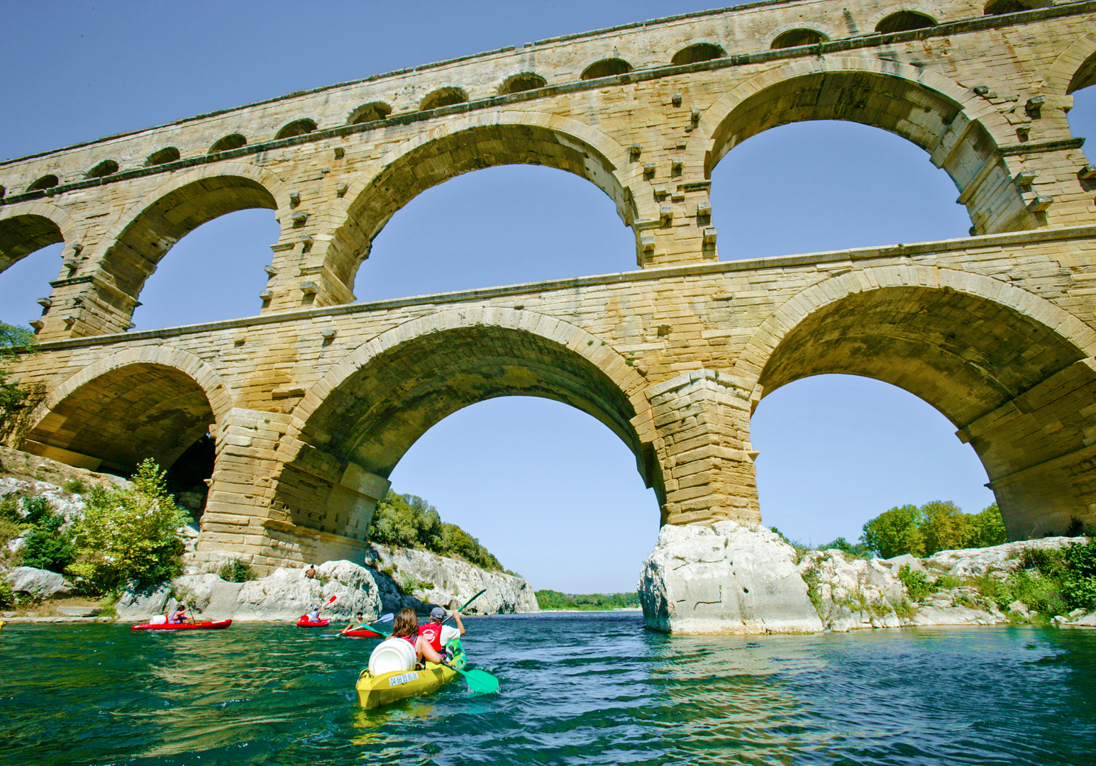 Zu den Highlights eures Urlaubs gehören eine Kanutour auf dem Gardon oder eine digitale Schatzsuche im Palais des Papes in Avignon – perfekt für einen Familienurlaub in Frankreich. Auch für einen aktiven Urlaub mit Kindern gibt es zahlreiche Möglichkeiten: Besonders empfehlenswert ist eine Radtour auf der 19 km langen Strecke von Sernhac bis Uzès, die auf einer alten Bahntrasse verläuft und am Pont du Gard vorbeiführt – ein Muss für Radfahrer*innen und Wanderfans.