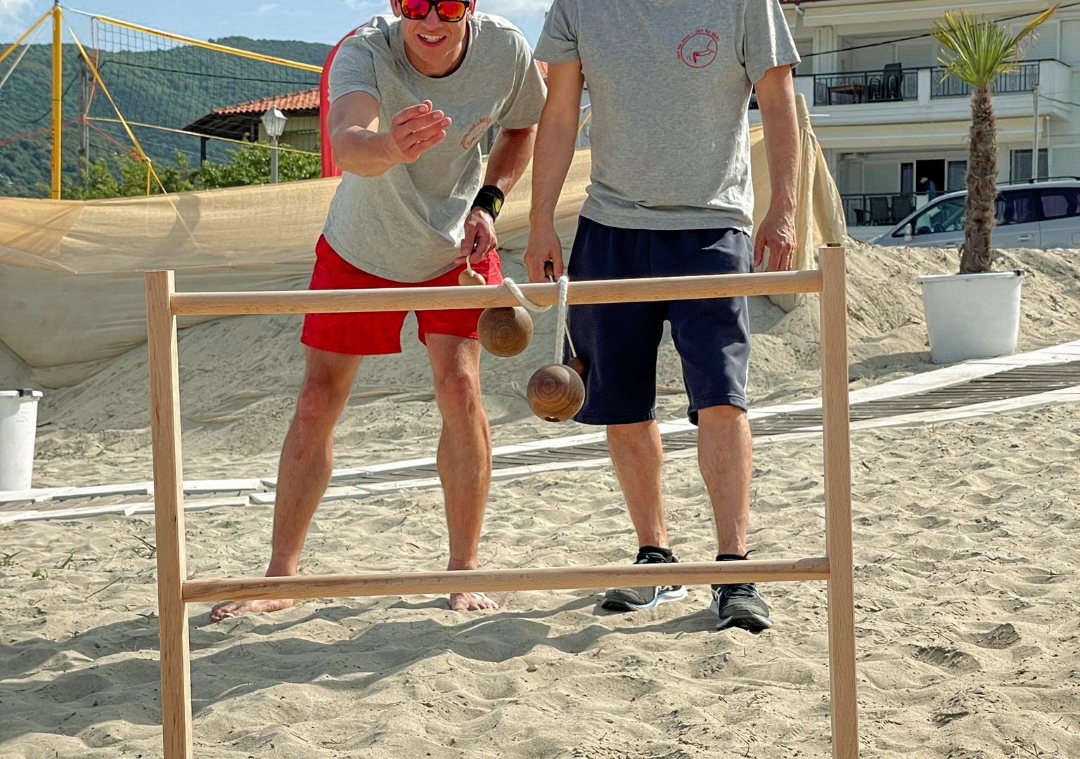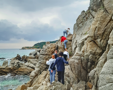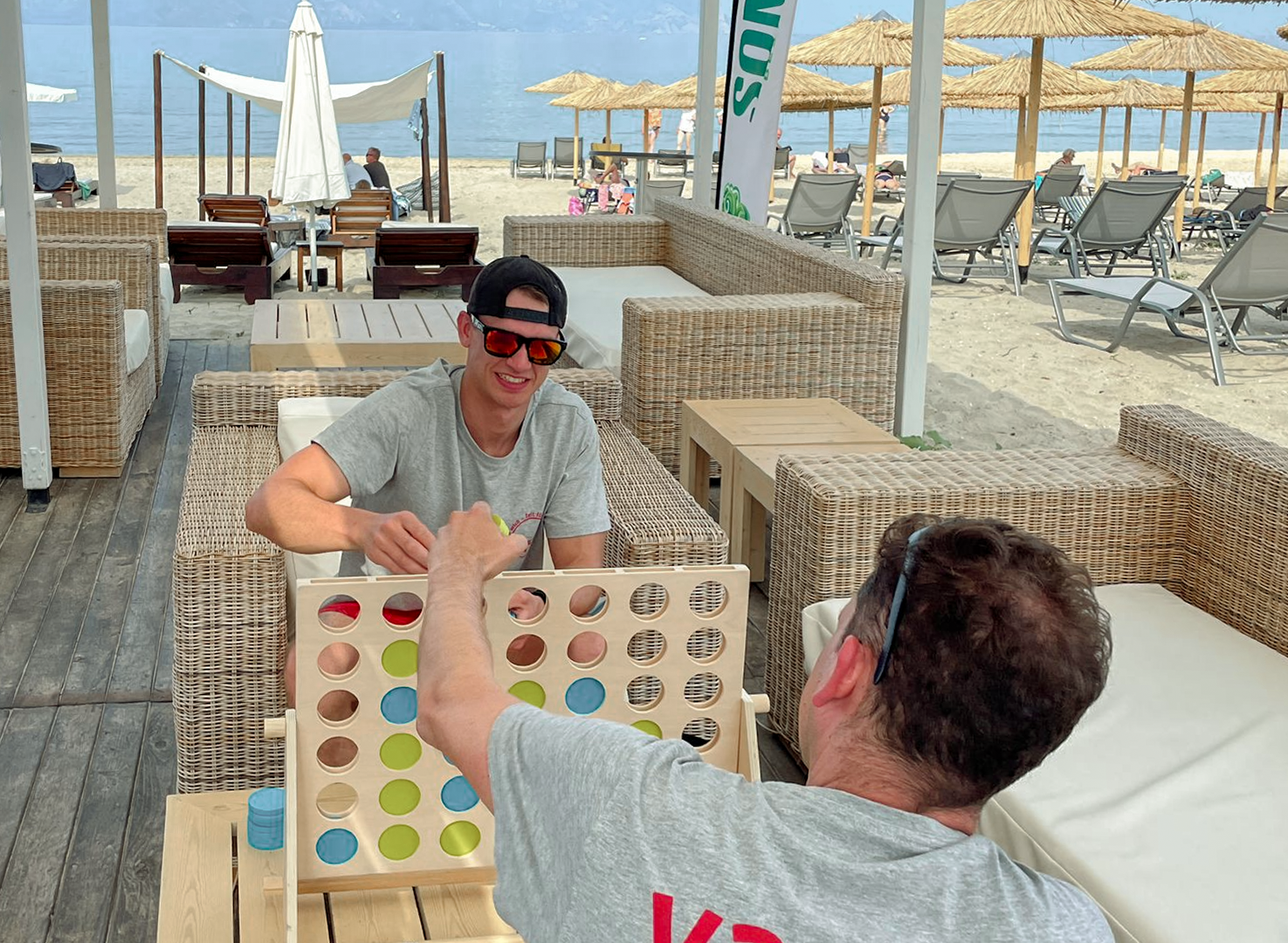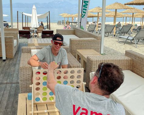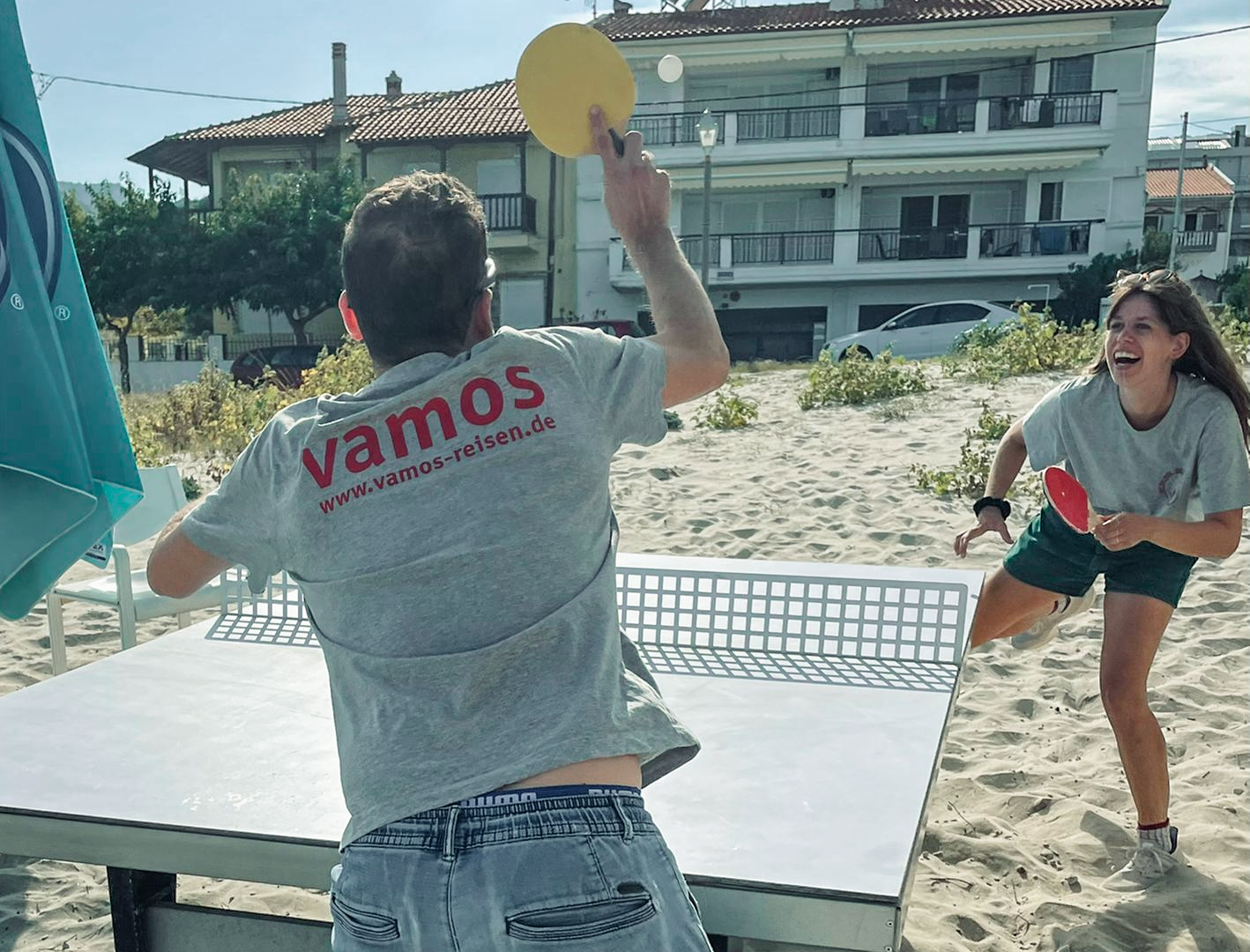 Im VAMOS Jugendprogramm (ab 12 Jahren) steht in den Pfingst-, Sommer- und Herbstferien vor allem eines im Mittelpunkt: Strand, Bewegung und Gemeinschaft. Ob bei Beachvolleyball, Wasserball oder einer Klippenwanderung – hier ist Action garantiert. Ein Treffpunkt für Jugendliche und Eltern ist die hauseigene Strandbar, besonders lebendig beim wöchentlichen vamos Familienabend, etwa bei einem Table-Quiz am Meer. Der Beach-Treff dreimal pro Woche bringt Schwung an den Strand – für Jugendliche und Erwachsene gleichermaßen. Ein weiteres Highlight: Gastgeber Grigorios lädt alle vamos Familien einmal pro Woche zu einem gemeinsamen Abendessen ein (gegen Entgelt) – eine schöne Gelegenheit zum Kennenlernen und Genießen.