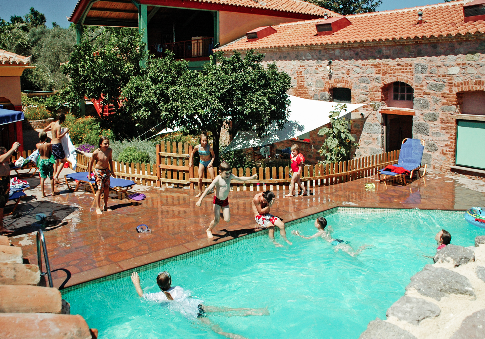 Der Pool sorgt für Abkühlung und unter den Bäumen ist Platz zur Ruhe zu kommen, gemeinsam zu lesen und Geschichten zu erfinden.