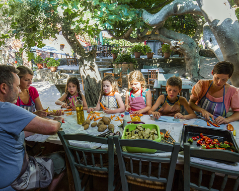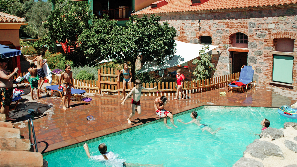Kinder finden in diesem Familienurlaub alles, was sie für gelungene Ferientage brauchen; mit der VAMOS Kinderbetreuung besuchen sie den Esel Sokrates, planschen im Pool oder entdecken den Olivenhain mit kleiner Bühne für Theateraufführungen.