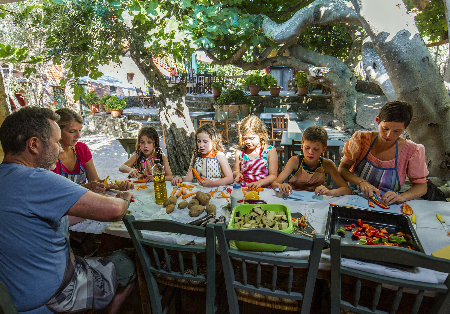 Die Villa Daphnis und Chloe ist eine Oase für Kinder! Der geschützte Garten bietet reichlich Platz für Entspannung, Bewegung und Gemeinschaft. In der VAMOS Kinderbetreuung findet ein besonderes Programm für alle zwischen 3 und 13 Jahren statt. Auf den Spuren griechischer Götter wird der Garten unsicher gemacht, Aufführungen auf die eigene Bühne gebracht und natürlich Zeit mit dem Esel verbracht.