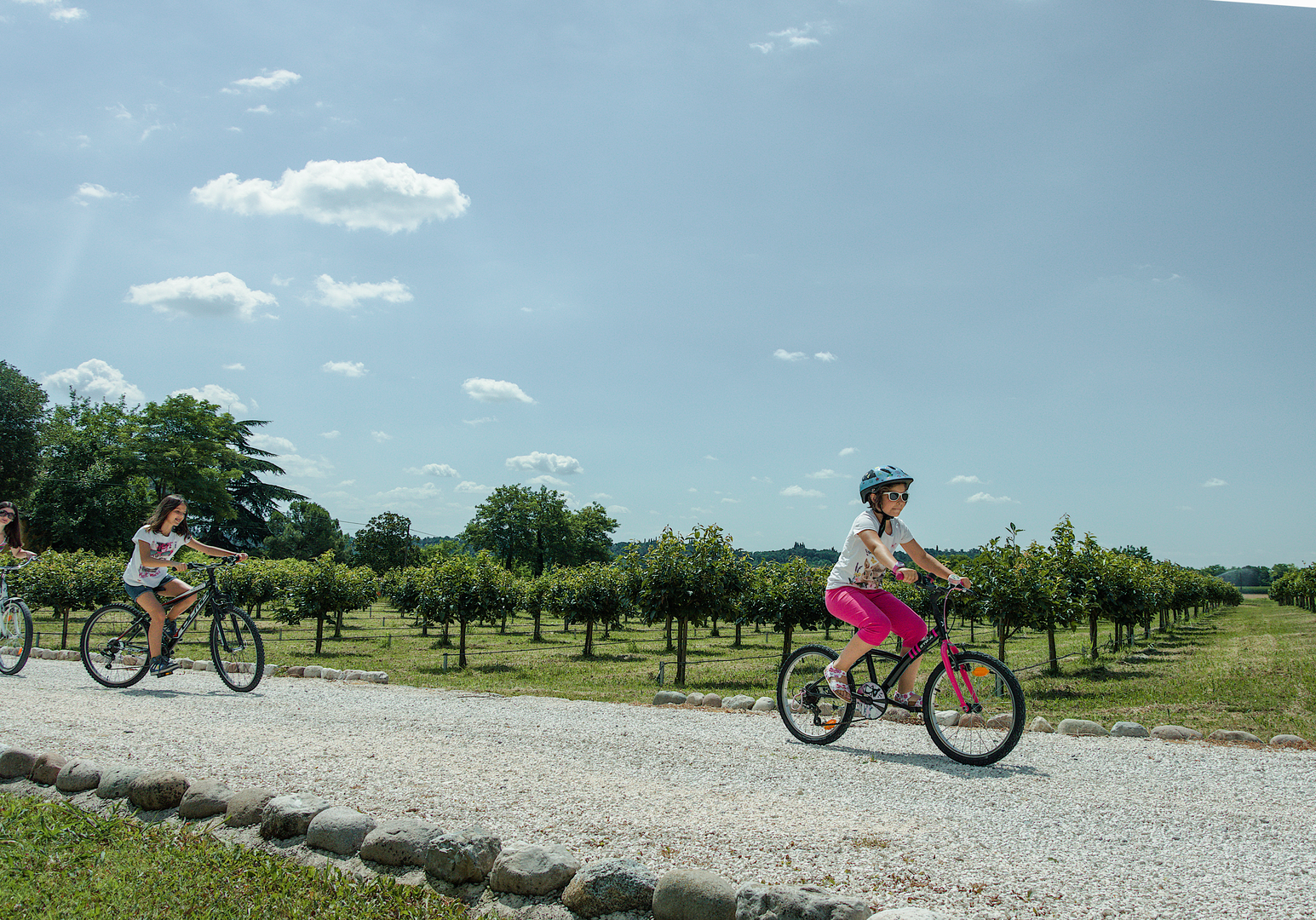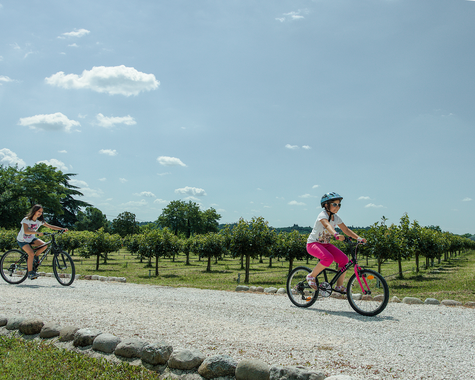 „Lago Delle Emozioni“, See der Emotionen, nennen die Menschen in Italien den Gardasee, der bis heute nichts von seiner Faszination eingebüßt hat. Vom Agriturismo aus erreicht ihr nach 10 Kilometern das flache Südufer. Dort ist das lebendige Peschiera del Garda ein schöner Ort, um im Urlaub mit Kindern mit einem Eis in der Hand am See zu flanieren. Im malerischen Hafen legen regelmäßig Dampfer zu Ausflugsfahrten ab. Zu Fuß oder nach ein paar Minuten mit dem Rad erreicht ihr Monzambano mit seinen mittelalterlichen Gassen, Barockkirche und Burgruine.