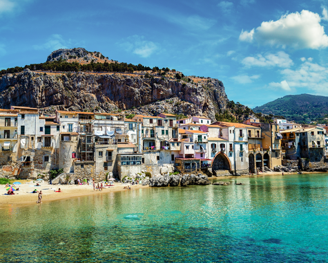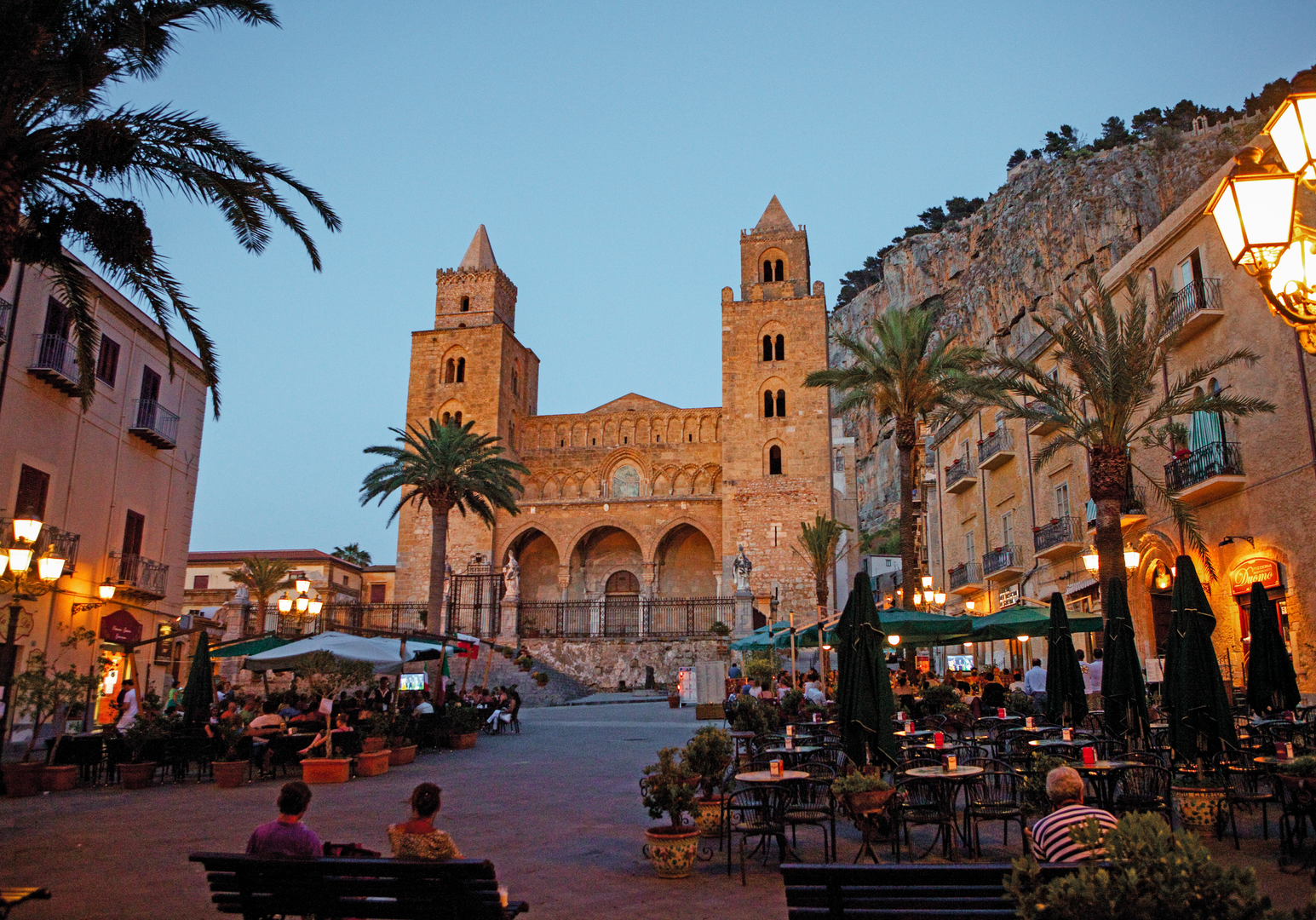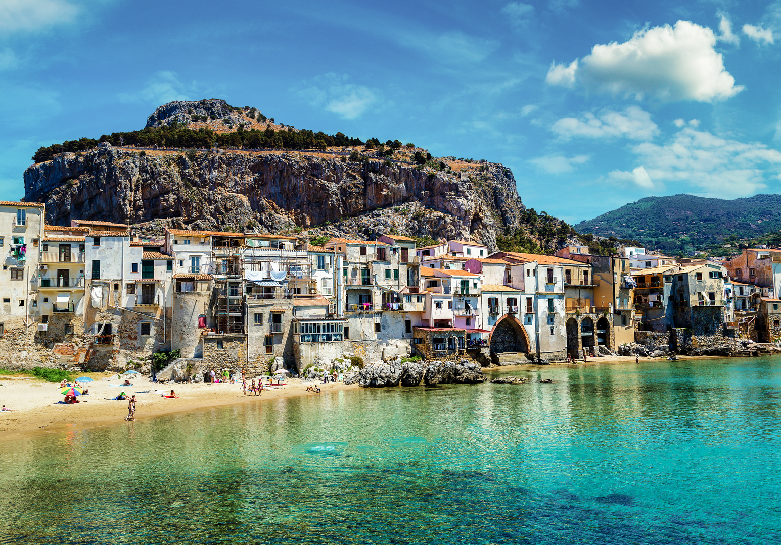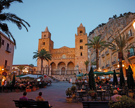 Für viele Besucher gilt Cefalù als Siziliens malerischste Stadt am Meer. Die arabisch anmutende Altstadt schmiegt sich an den mächtigen Felsenberg Rocca di Cefalù. Vom Hotel, das auf der anderen Seite liegt, führt ein Spaziergang von etwa 20 Minuten in das romantische Gassengewirr. Mittendrin erhebt sich der imposante Duomo. Die Kathedrale ist ein großartiges Zeugnis normannischer Baukunst und zählt seit 2015 zu den UNESCO-Weltkulturerbestätten in Italien. An lauen Sommerabenden sind alle Tische auf der Piazza Duomo bis tief in die Nacht hinein besetzt. Tagsüber ist der feine, goldgelbe Sandstrand vor der Kulisse der Altstadt beliebter Treffpunkt zum Baden und Plaudern.