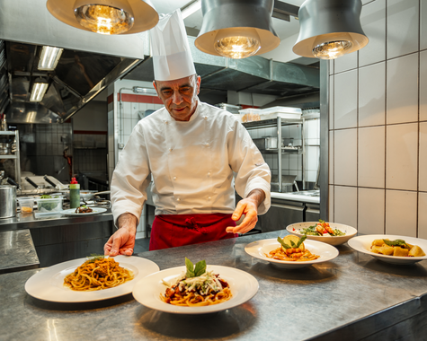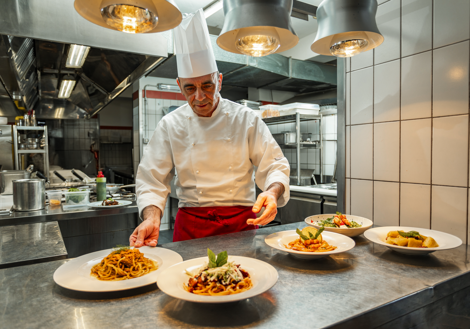 Im hauseigenen Restaurant wird sizilianisch, italienisch, frisch und lecker gekocht – den herrlichen Ausblick gibt es zum Frühstücksbuffet und zum viergängigen Abendmenü gratis dazu.