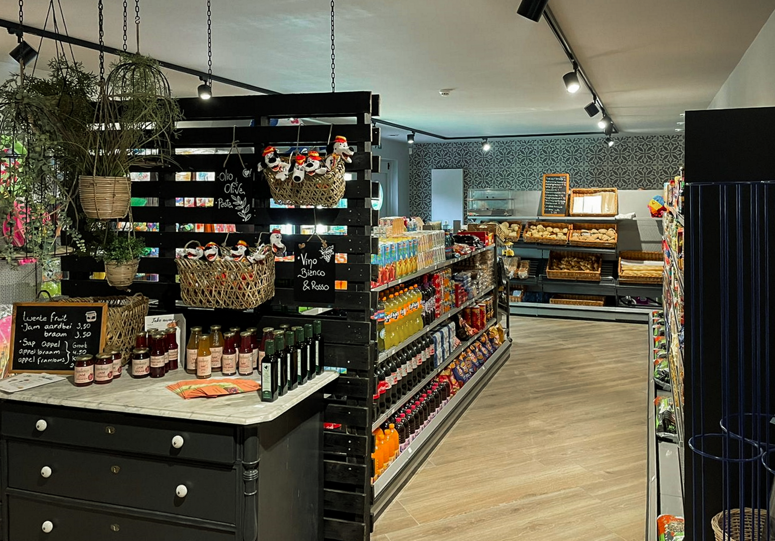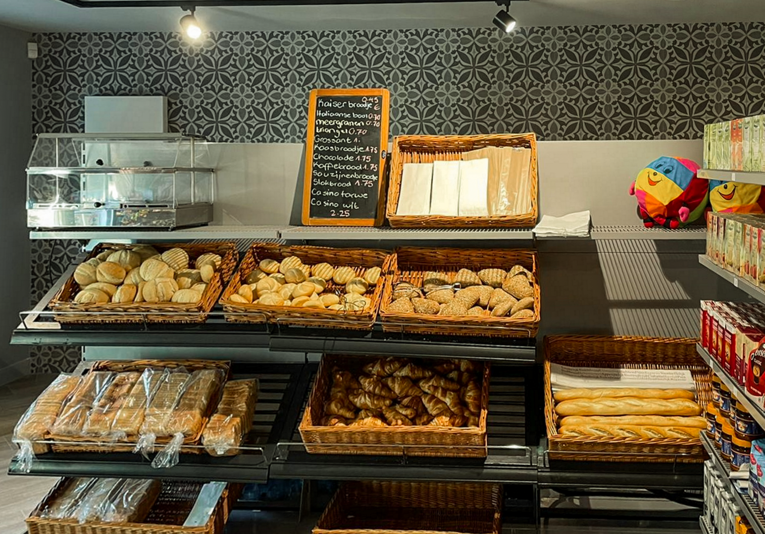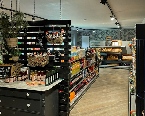 Lebensmittel und frische Brötchen erhaltet ihr in einem kleinen Laden direkt auf dem Platz. Wer nicht selbst kochen mag, lässt sich nebenan im Restaurant Frühstück, Abendessen oder einen Eisbecher servieren (Entgelt).