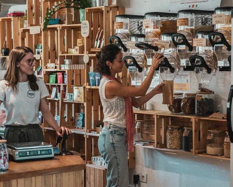 Auf der Sonnenterrasse des Restaurants genießt ihr frische, meist biologische Gerichte aus regionalen Zutaten. Im Eco Store findet ihr Bio-Lebensmittel, Campingzubehör und Schönes aus lokalem Handwerk.