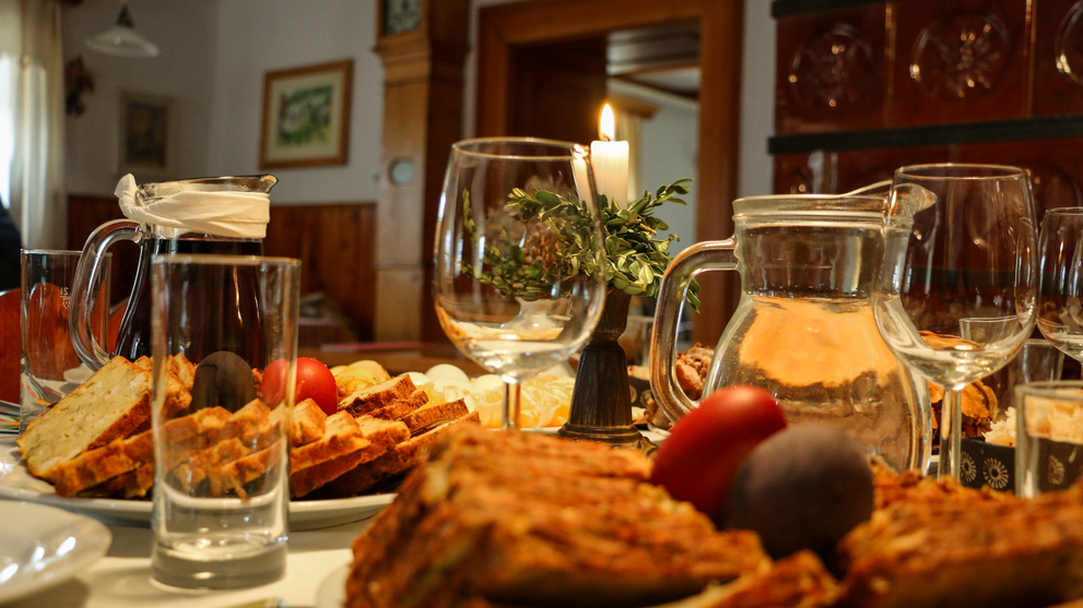Ihr könnt wahlweise selber kochen oder das Freiluftleben komfortabel mit Frühstück und Abendessen in der traditionellen Bauernstube im Haupthaus verbinden. Umweltbewusstsein und Liebe zum Detail sind Familie Skuber besonders wichtig. So stammen die meisten Lebensmittel auf dem Hof aus ökologischem Anbau. Beim viergängigen Abendmenü mit regionalem Einschlag und am reichhaltigen Frühstücksbuffet könnt ihr euch jeden Tag auf sorgfältig ausgewählte, frische Zutaten freuen.