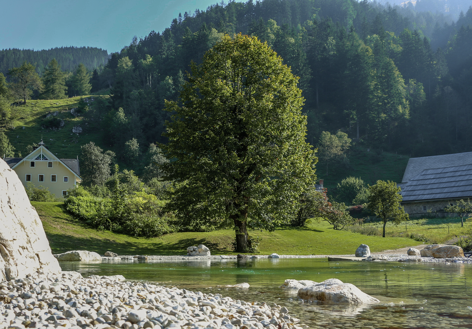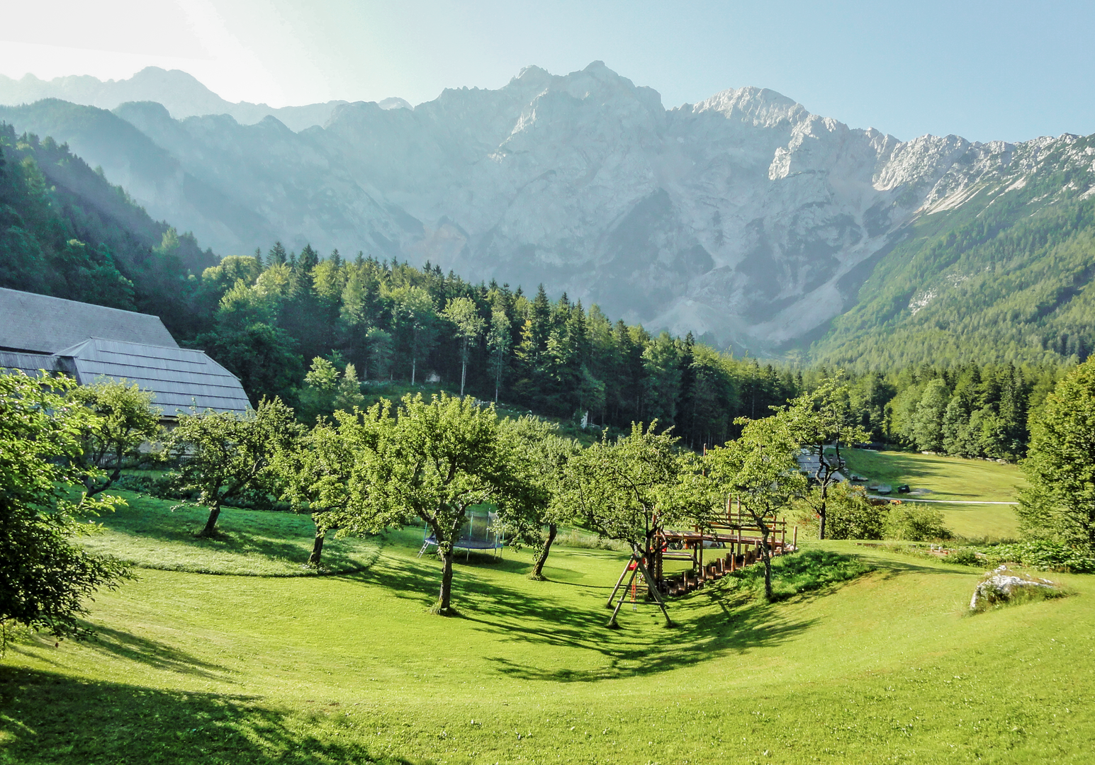 Dies ist ein Märchen – aber keines aus längst vergangenen Zeiten. Sein Schauplatz ist faszinierende Natur im Dornröschenschlaf. Und das slowenische Bergdorf Jezersko, dem ein herzförmiger See seinen Namen gab. Die Steiner Alpen und ein Teil der Karawanken ranken sich um das Jezersko-Tal. Stille hat in dieser unversehrten Welt das Sagen. Etwas oberhalb des Dorfs, unter dem Berg Makekova Kochna, hat sich euer Ferienzuhause eine sonnige Alleinlage und die Nachbarschaft von Wiesen und Wäldern ausgesucht: Von hier blickt der Bio-Bauernhof Makek auf seine fast tausendjährige Geschichte als Familienbauernhof zurück. 1907 übernachteten hier die ersten Urlauber. Seit 2017 begrüßt der Hof VAMOS Gäste.