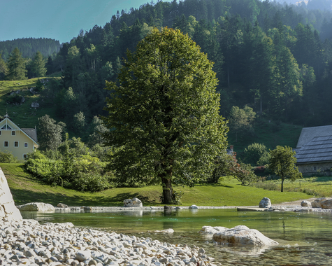 Im Bergdorf Jezersko in den Steiner Alpen erlebt ihr einen naturnahen Familienurlaub in Slowenien. Etwas oberhalb des Dorfs liegt der traditionsreiche Bio-Bauernhof Makek, ein Familienhof mit fast tausendjähriger Geschichte. Wiesen, Wälder und Bergpanorama umgeben das Gelände, auf dem eure Kinder frei spielen, Tiere besuchen und schnell neue Freunde finden können. Ein großer Naturbadeteich, viel Platz im Garten und ein Spielplatz sorgen für entspannte Urlaubstage in den slowenischen Alpen.