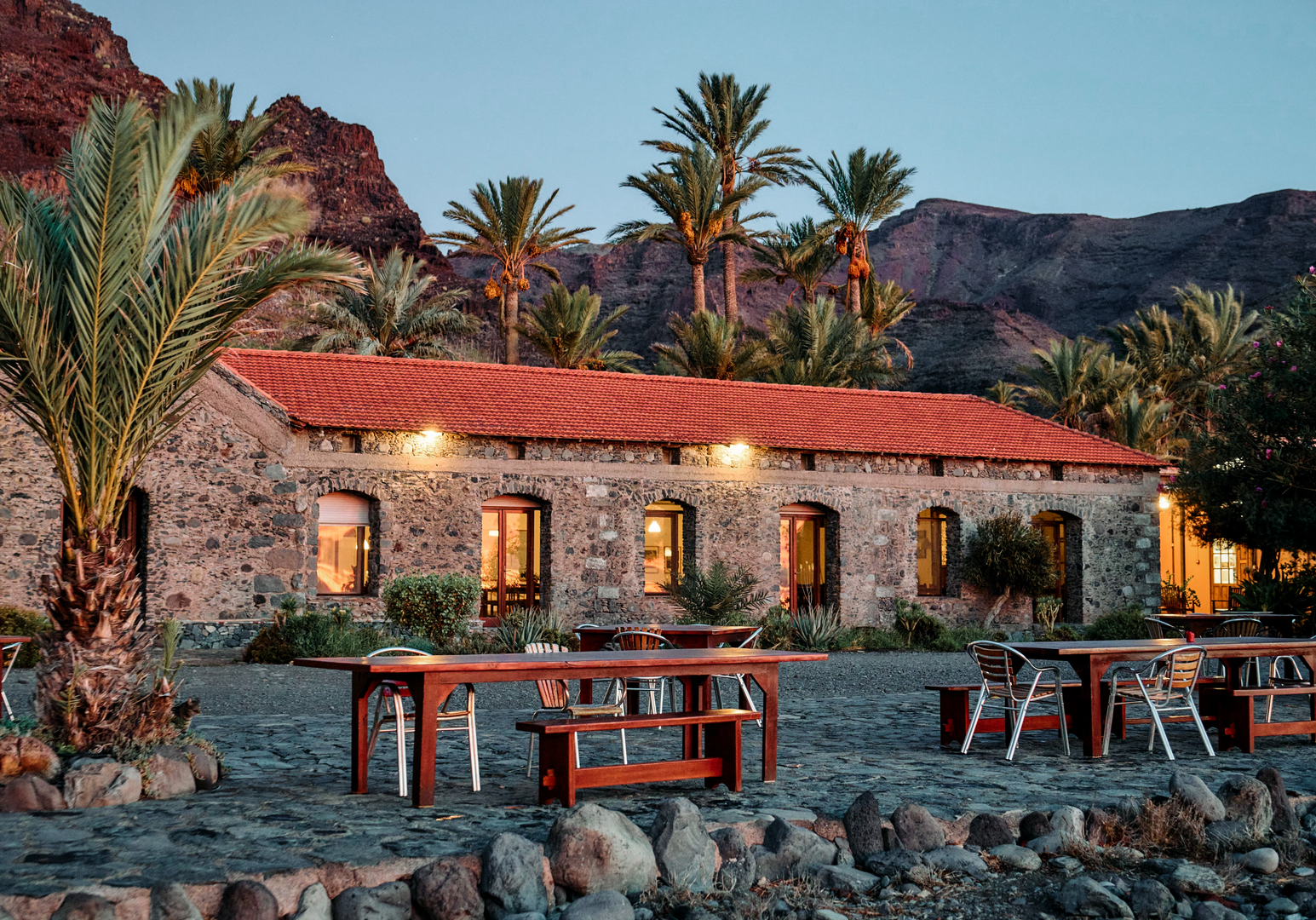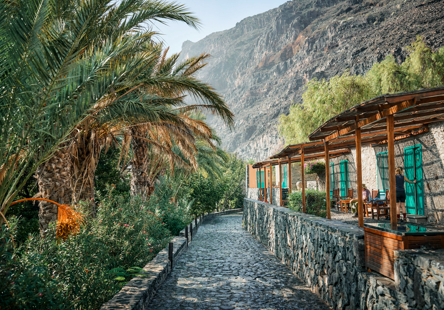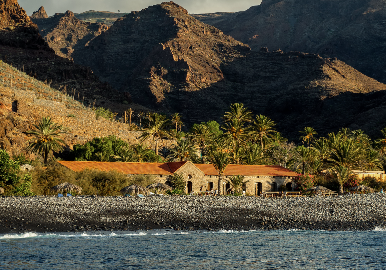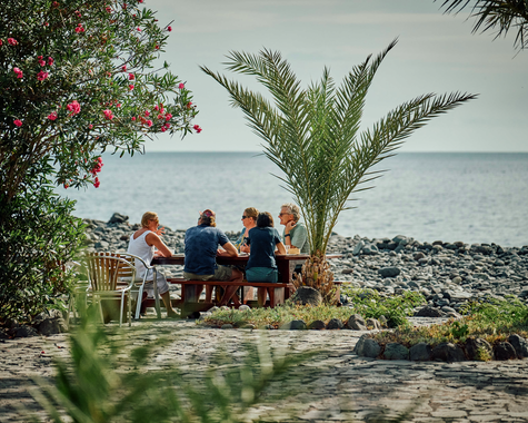 Auf La Gomera ist das ganze Jahr über Badesaison, sogar in den Wintermonaten. Die Temperaturen liegen zwischen 19 und 29 °C, das Wasser erwärmt sich auf 18 bis 23 °C. Die Bucht von El Cabrito mit Steinen, Kieseln und schwarzem Sandstrand ist 500 m breit. Mit den hauseigenen Schiffen „San Borondon“ und „Pardela“ habt ihr täglich die Gelegenheit, in den Hauptort San Sebastián zu fahren, wo es am Hafen einen geschützten Sandstrand gibt. Eure Gastgeber vermitteln euch gerne Schiffsausflüge mit der Möglichkeit, Delfine zu beobachten. Zugleich ist die Vulkaninsel La Gomera ein fantastisches Bergwanderziel: Lasst euch im Nationalpark Garajonay vom Nebel-Lorbeer-Wald mit seinen bartartigen Flechten verzaubern. Auf der Finca werden Massagen, Yoga, Meditation, botanische Führungen und landwirtschaftliche Aktivitäten angeboten. Nach Sonnenuntergang trefft ihr euch bei Musik und exotischen Getränken in der Plantagen-Bar. ¡Bienvenidos en La Gomera!