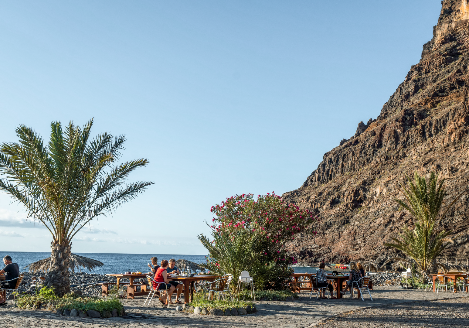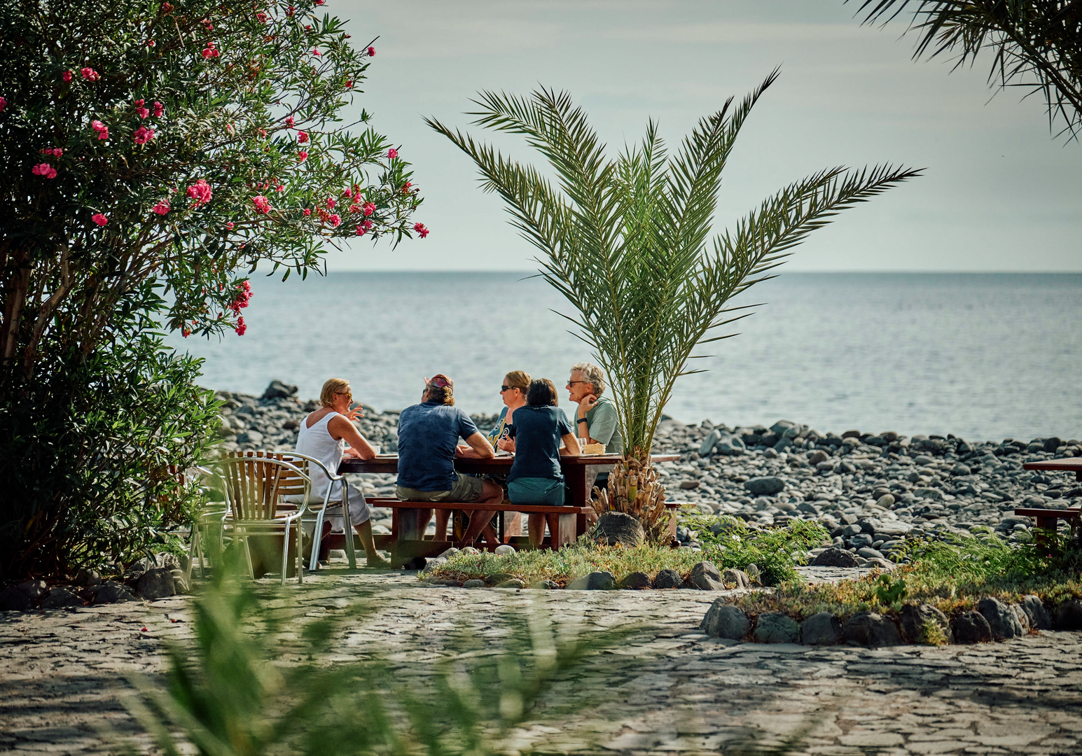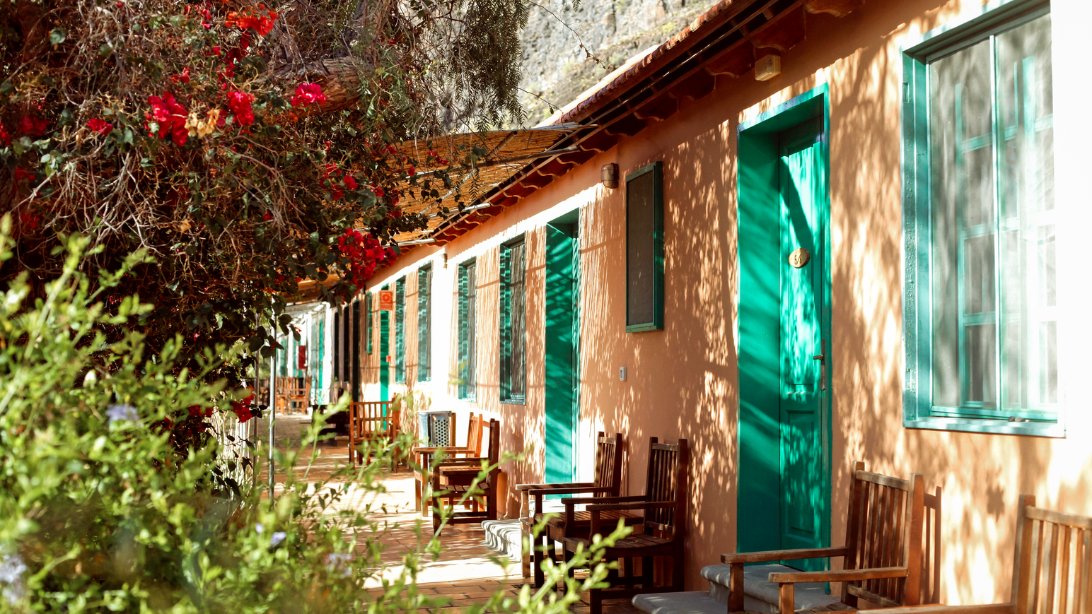 Auf La Gomera ist das ganze Jahr über Badesaison, sogar in den Wintermonaten. Die Temperaturen liegen zwischen 19 und 29 °C, das Wasser erwärmt sich auf 18 bis 23 °C. Die Bucht von El Cabrito mit Steinen, Kieseln und schwarzem Sandstrand ist 500 m breit. Mit den hauseigenen Schiffen „San Borondon“ und „Pardela“ habt ihr täglich die Gelegenheit, in den Hauptort San Sebastián zu fahren, wo es am Hafen einen geschützten Sandstrand gibt. Eure Gastgeber vermitteln euch gerne Schiffsausflüge mit der Möglichkeit, Delfine zu beobachten. Zugleich ist die Vulkaninsel La Gomera ein fantastisches Bergwanderziel: Lasst euch im Nationalpark Garajonay vom Nebel-Lorbeer-Wald mit seinen bartartigen Flechten verzaubern. Auf der Finca werden Massagen, Yoga, Meditation, botanische Führungen und landwirtschaftliche Aktivitäten angeboten. Nach Sonnenuntergang trefft ihr euch bei Musik und exotischen Getränken in der Plantagen-Bar. ¡Bienvenidos en La Gomera!