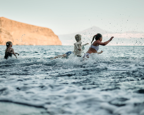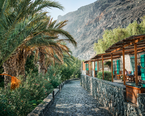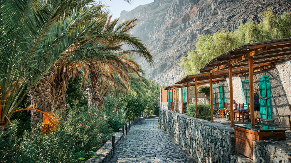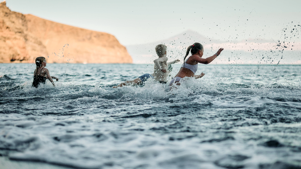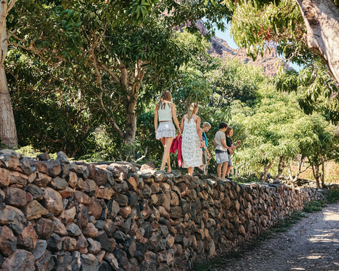 La Gomera gehört zu den Kanarischen Inseln und liegt nur 25 km von Teneriffa entfernt im Atlantik. Vor 500 Jahren stach Christopher Columbus von hier aus in die Neue Welt in See. Die Finca El Cabrito, eine ehemalige Bananenplantage aus dem frühen 20. Jahrhundert, befindet sich direkt am Meer. Eingerahmt von Mangobäumen und Dattelpalmen bietet sie einen traumhaften Blick auf den Teide, Spaniens höchsten Berg. Erlebt ein verborgenes Urlaubsparadies für Familien auf La Gomera mit abgelegenen Badebuchten am Ende eines wilden Barrancos.