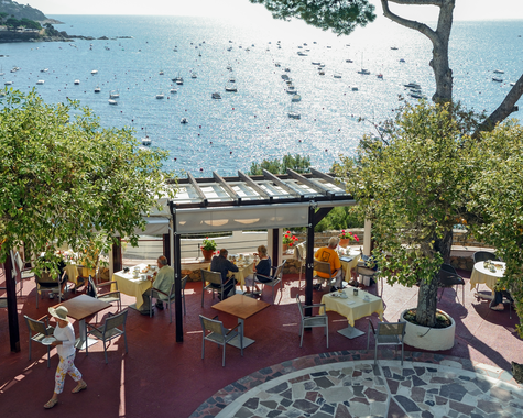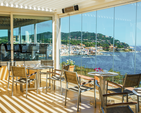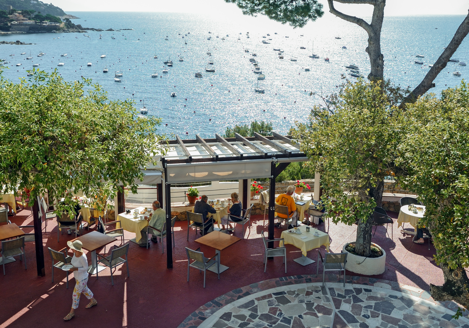 Beim Frühstück genießt ihr auf der Terrasse den wunderschönen Blick über die Bucht von Calella de Palafrugell. Wer sich daran nicht sattsehen kann, ist den lieben langen Tag dazu eingeladen, an einem der Bar-Tische Platz zu nehmen. Mittags oder abends speist, wer mag, à la Carte im Restaurantsaal mit Panoramablick oder auf der Terrasse des Restaurants „El Balcó de Calella“ (Der Balkon von Calella). ¡Buen provecho!