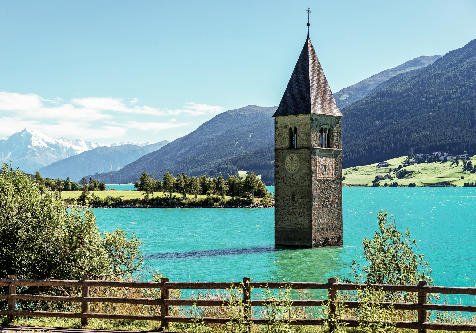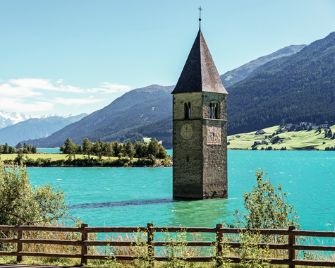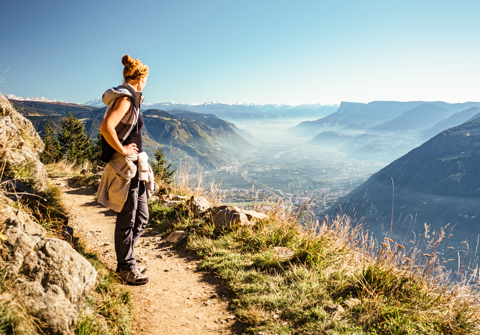 Dank des Klimas ist Wandern in dieser Region Südtirols schon ab Anfang März und bis tief in den Herbst ein Genuss. Eine regionale Besonderheit sind die flachen Waalwege entlang von Bewässerungskanälen, die hervorragend für einfache Wanderungen geeignet sind. Auch die Höhenwege sind kindertauglich: Ganz nah verläuft der Vinschger Höhenweg, 12 km entfernt der Meraner Höhenweg. Ihr sucht neben spannenden Wandertouren ein besonderes Ausflugsziel für euren Urlaub mit Kindern? Ein beliebtes Ziel ist der Reschensee (40 km), aus dessen Mitte der Kirchturm einer romanischen Kirche ragt. Vielleicht plant ihr auch noch ein bisschen Mittelmeerflair in euren Familienurlaub ein. Meran (30 km) präsentiert sich kontrastreich mit Bergpanorama und Palmen, Bergluft und mediterranem Klima, und ein Spaziergang durch die Altstadt der Kurstadt führt euch im Urlaub in Südtirol zu mittelalterlichen Lauben und Shopping-Arkaden.