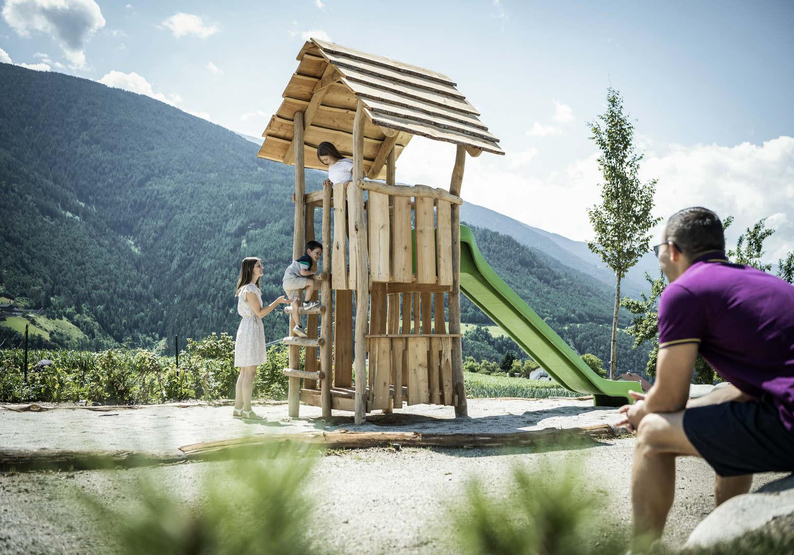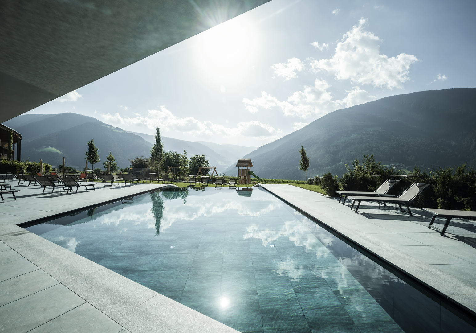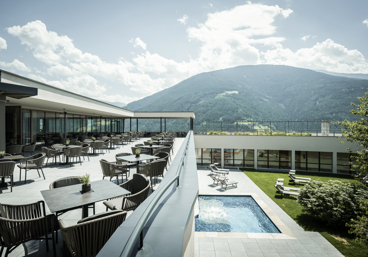 Die Landstraße führt durch Tannenwälder und Apfelwiesen auf ein sonnenverwöhntes Hochplateau und endet am neu eröffneten Hotel Das Mühlwald. „Hier ist es aber schön!“, werden Ihre Kinder beim Aussteigen rufen, und Kinder haben bekanntlich recht. Das Gastgeber-Paar Sara und Franz Josef Tauber begrüßt Sie herzlich im Südtiroler Eisacktal, wo sie Das Mühlwald im Ortsteil Natz bei Brixen in zweiter Generation führen.