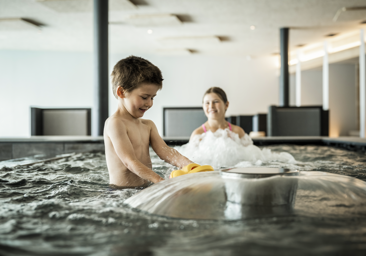 Eine Familienreise, bei der wirklich an alles gedacht ist: vom Innenpool mit Rutsche über den beheizten Außenpool bis hin zum Babypool, im Wasser fühlen sich alle wohl! Während ihr im Spa-Bereich entspannt, erleben eure Kinder unbeschwerte Tage mit liebevoller Betreuung, die auch für die Kleinsten angeboten wird. Spielräume und der Streichelzoo komplettieren das Kinder-Urlaubsglück.